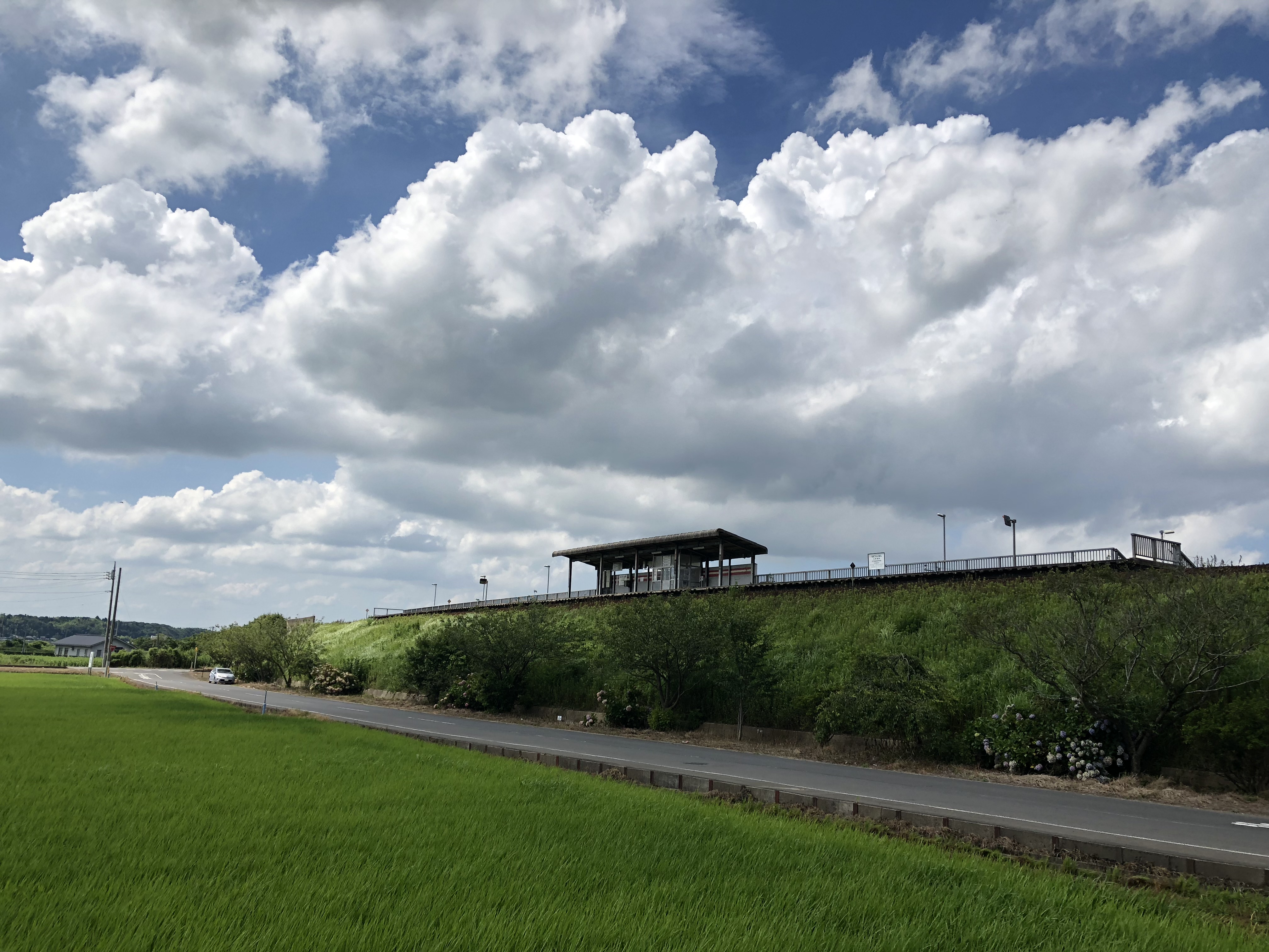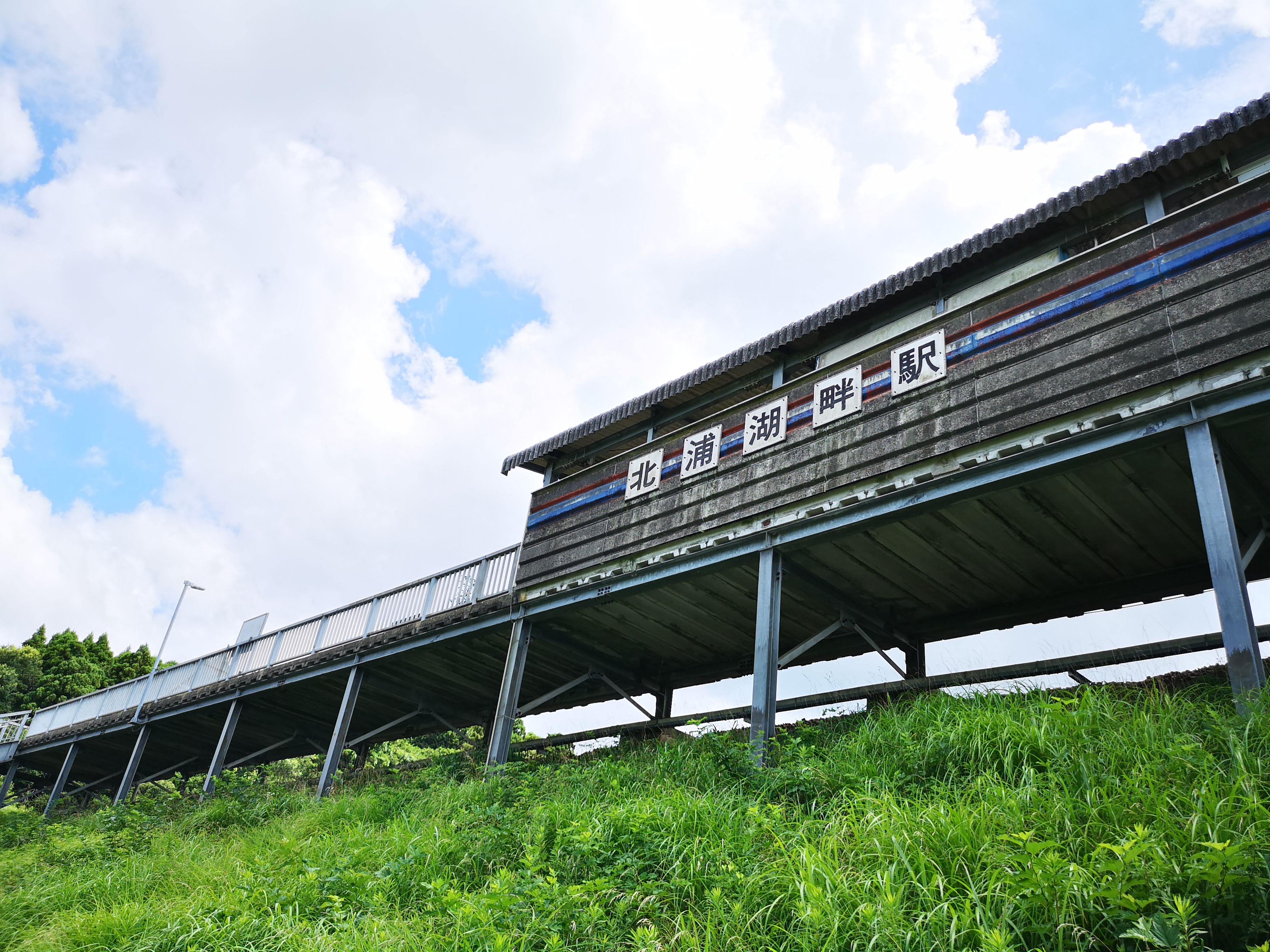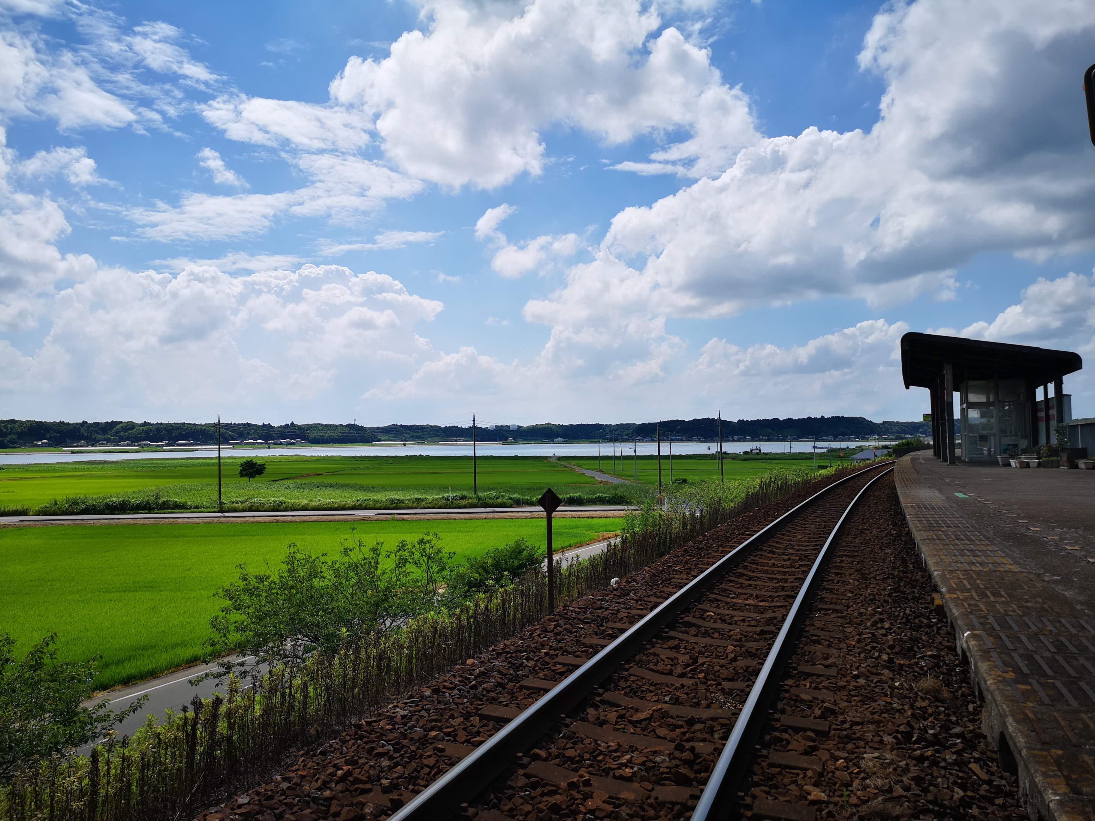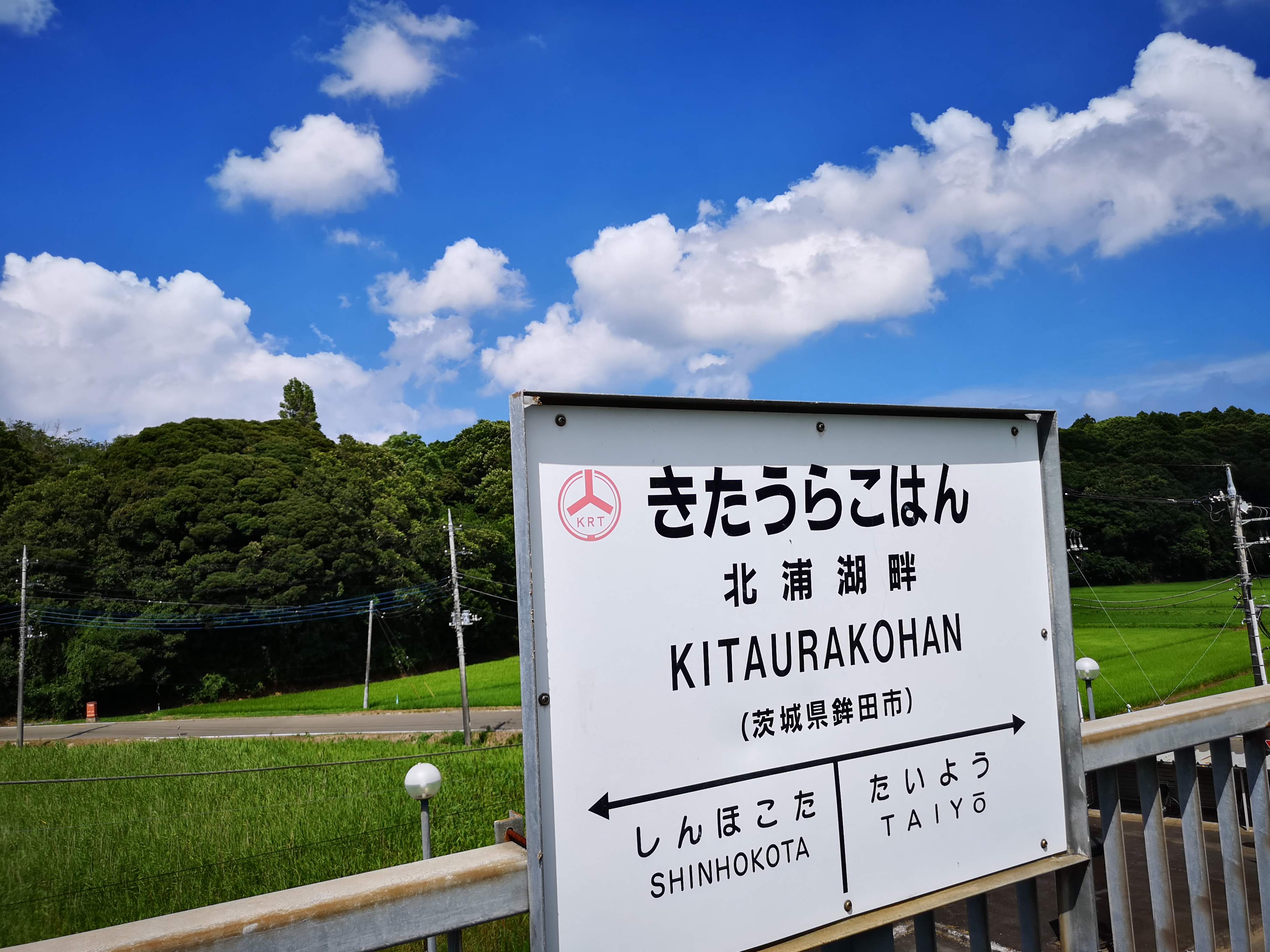 北浦湖畔から少し内陸に入った田園風景の中にある大洗鹿島線の無人駅です。高台にあるホームからは北浦を一望することができます。